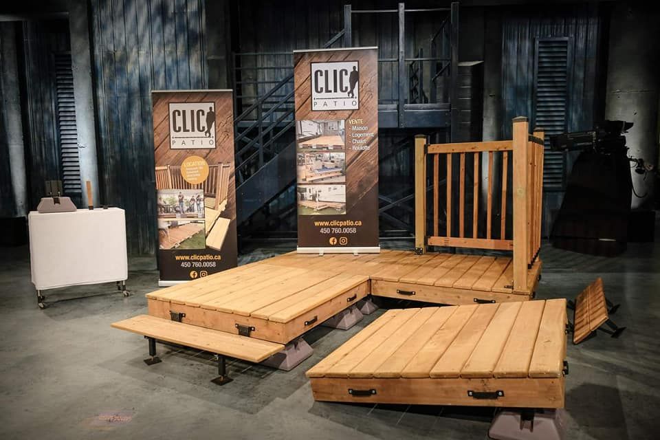 Clic Patio est la seule entreprise au Québec à offrir des unités de patio préfabriqués personnalisables qui s'assemblent l'un à l'autre grâce au système d'ancrage Clic Patio. Que ce soit pour la cour arrière de votre maison, une roulotte, un food truck ou la terrasse de votre restaurant, vous pouvez monter et démonter votre patio en un simple clic. Pas besoin d’avoir d’expérience en construction!