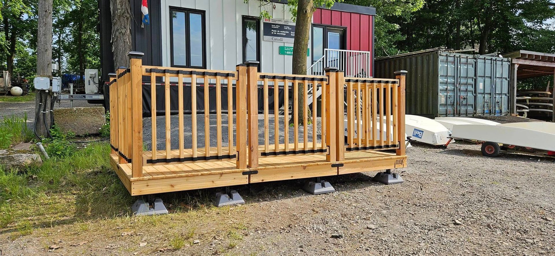 Complétez votre installation avec nos garde-corps, escaliers, poteaux et quincaillerie. Tout est conçu pour s'intégrer parfaitement à votre patio.