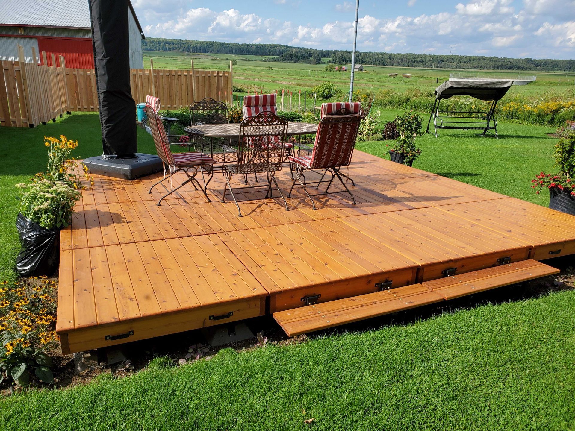 Avec un patio modulaire comme le nôtre, les possibilités de configuration sont presque infinies. Et peu importe comment vous personnalisez votre patio, le montage et le démontage restent tout aussi simples. Voyez tout ce que vous pourriez faire avec notre produit!